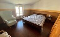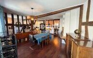 Il offre une entrée spacieuse, un grand séjour lumineux avec cheminée et poutres apparentes, ainsi qu'une cuisine ouverte aménagée et équipée.
