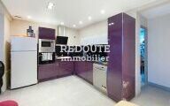 Maison de type 4 de plain pied climatisée proche toutes commodités avec terrasse et jardin, comprenant : entrée avec rangements, cuisine équipée ouverte sur vaste pièce à vivre, 2 chambres en rez-de-chaussée avec salle de douches et salle de bain, chambre enfant et bureau à l'étage.