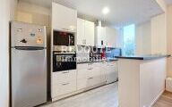 Au premier étage, un palier desservant une pièce de vie lumineuse avec sa cuisine ouverte et un bureau.